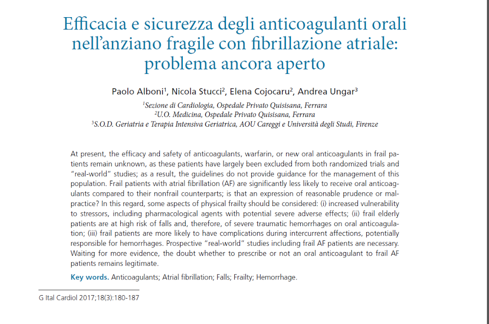 Il contributo del Dott. Alboni ad una nuova pubblicazione sul Giornale Italiano di Cardiologia.